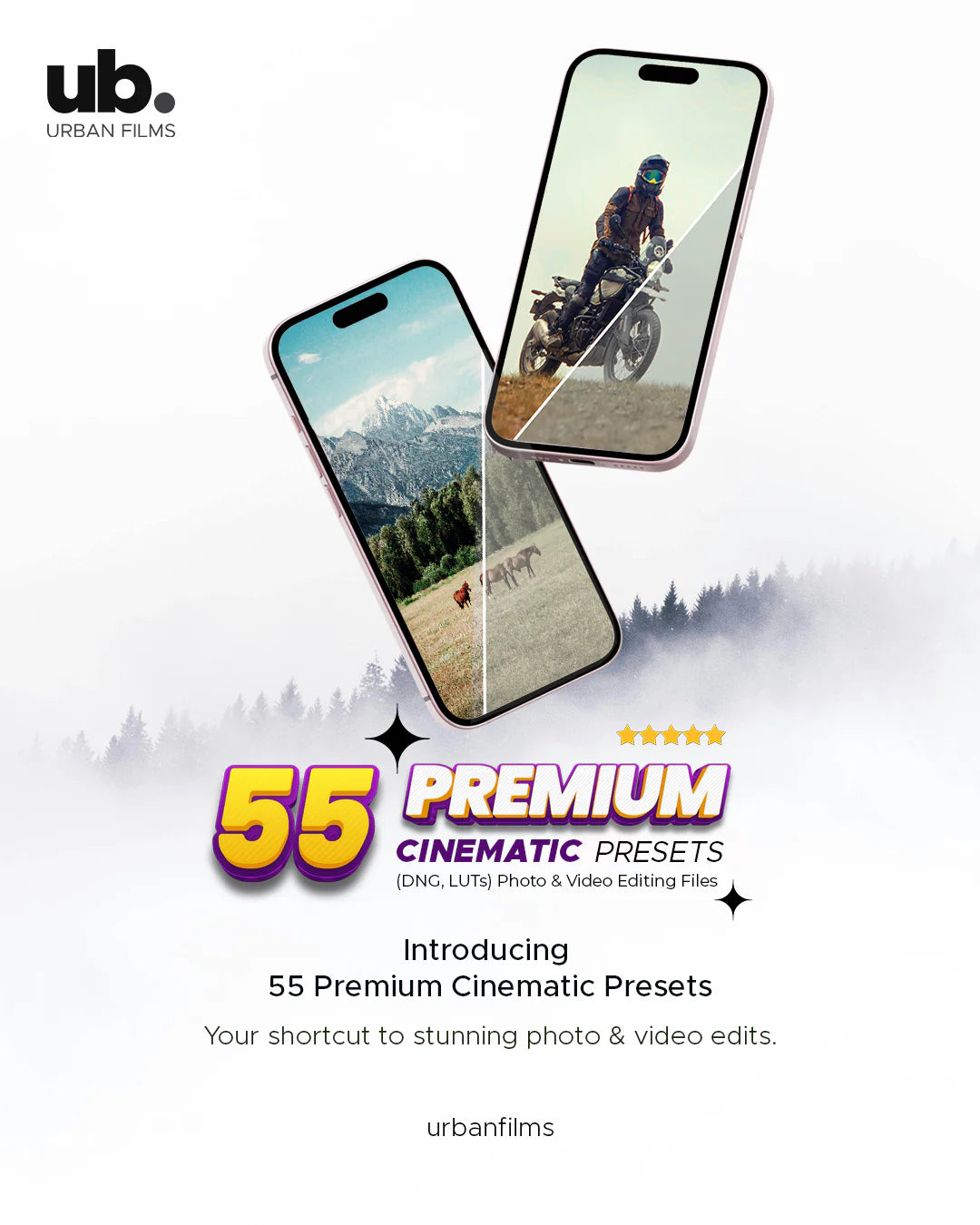 For a limited time, you'll also receive our highly sought-after 55 Premium Cinematic Presets pack a ₹199 value absolutely FREE with your Master Bundle purchase. Instantly achieve stunning color grades used by professionals and make your footage look like a feature film!